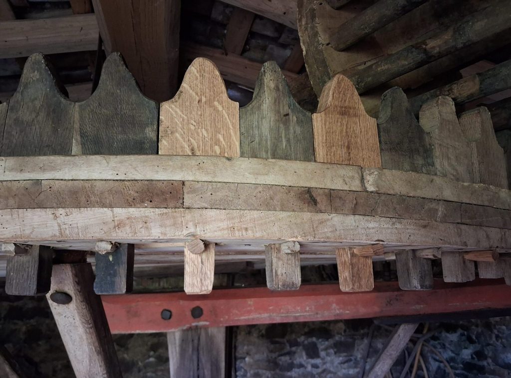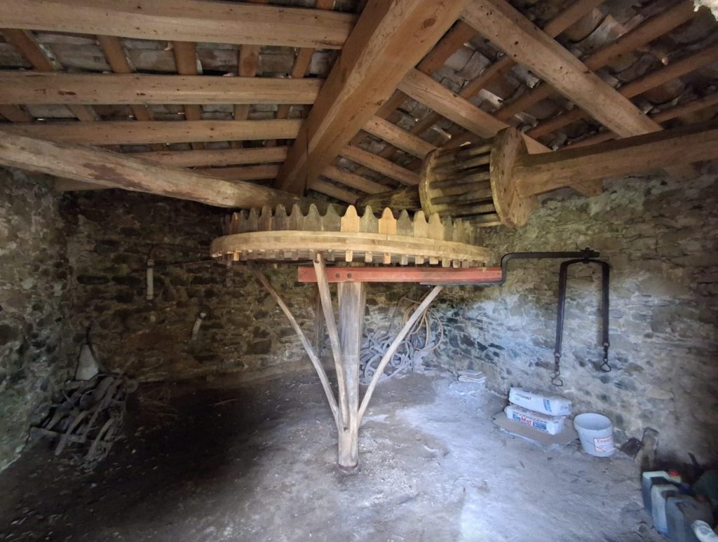 La sínia restaurada és especialment destacable, ja que és l’única coneguda dins l’espai natural protegit construïda íntegrament amb fusta. El 2025 es va intervenir d’urgència per renovar la teulada del cobert que l’aixopluga, evitant la degradació de la fusta i el risc de col·lapse de l’estructura. En aquesta segona fase, s’ha restaurat l’enginy hidràulic: neteja, desparasitació i protecció de la fusta, substitució de peces malmeses i anivellament dels engranatges perquè tornin a ser funcionals.