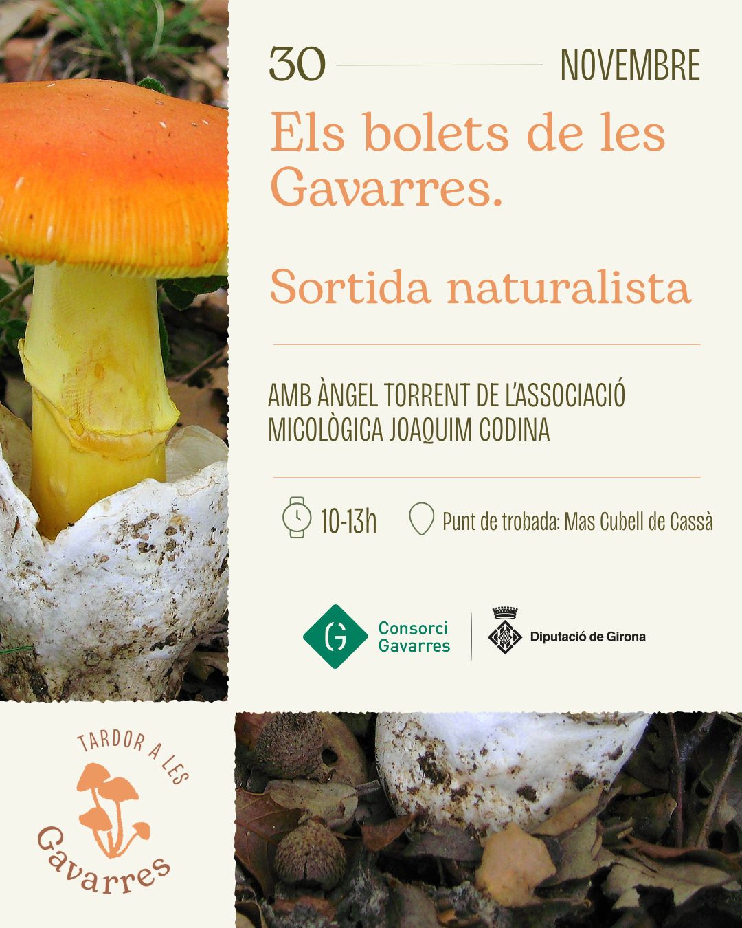 Es recorda que no cal portar cistell. L’objectiu d’aquesta sortida no és identificar bolets comestibles, sinó oferir una visió científica i descobrir la gran diversitat d’espècies que tenim a les Gavarres. L’objectiu de la caminada és posar el focus en aquells bolets que sovint passen desapercebuts.