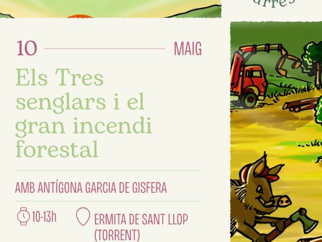 Inspirant-se amb el conte dels tres porquets, Maria Pipió ha escrit el conte “Els tres senglars i el gran incendi forestal”. Al voltant d’aquesta aventura l’empresa Gisfera ha elaborat jocs i material educatiu per treballar el tema del foc amb nens i nenes de 6 a 8 anys aproximadament. Aquesta activitat combina el joc, amb un conte amb dosis de reflexió al voltant del foc. L’Antígona de Gisfera farà reflexionar els més petits sobre com ens podem protegir del foc i què em de fer des de la gestió forestal per fer més resilients els nostres boscos.